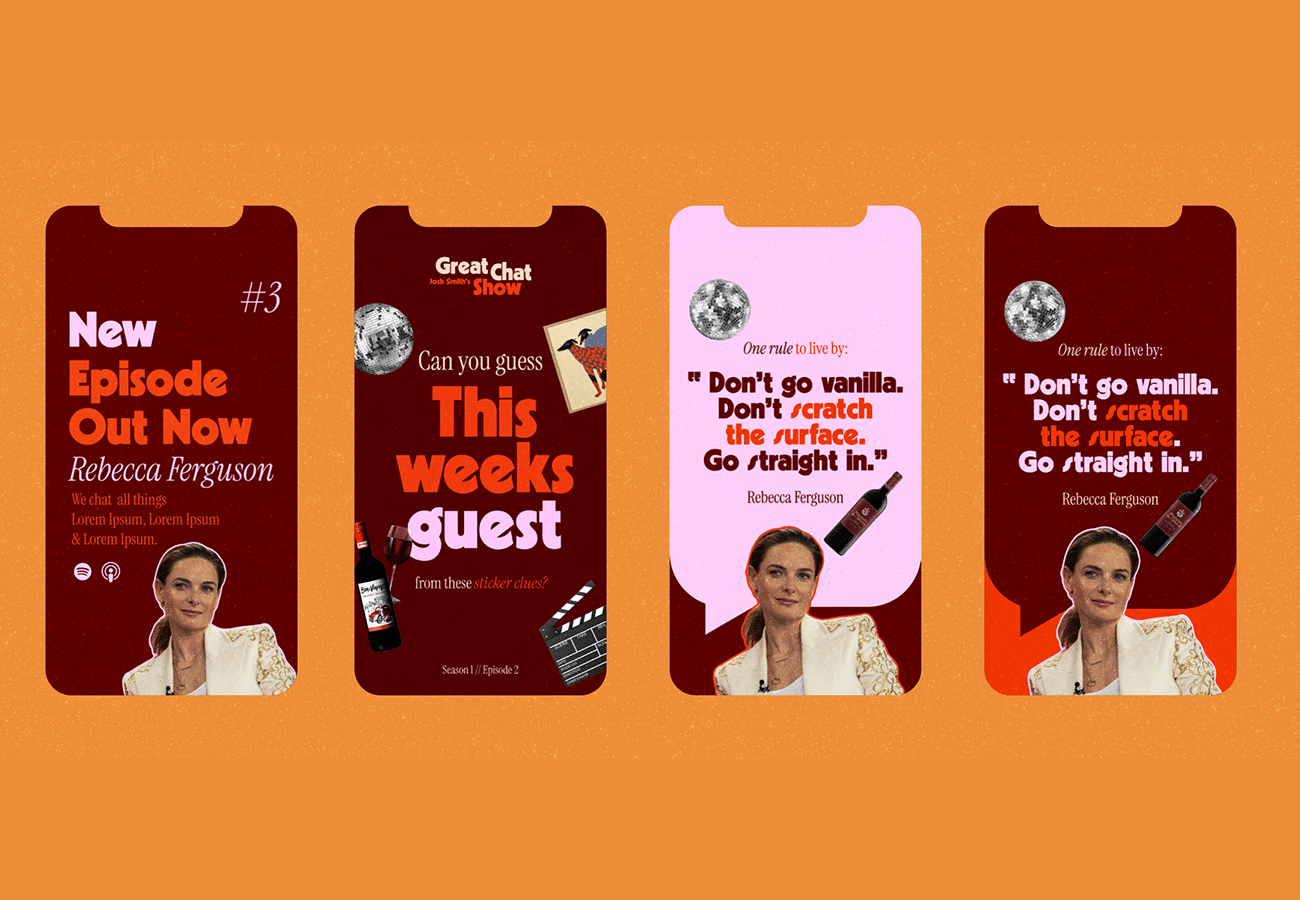 We started with strategy and alignment workshops, defining what The Great Chat needed to stand for, how it should feel, and where it could differentiate in a crowded podcast landscape. The goal was to create a clear identity that could carry across episodes, guests and platforms – not something that would need to be rethought six months in.